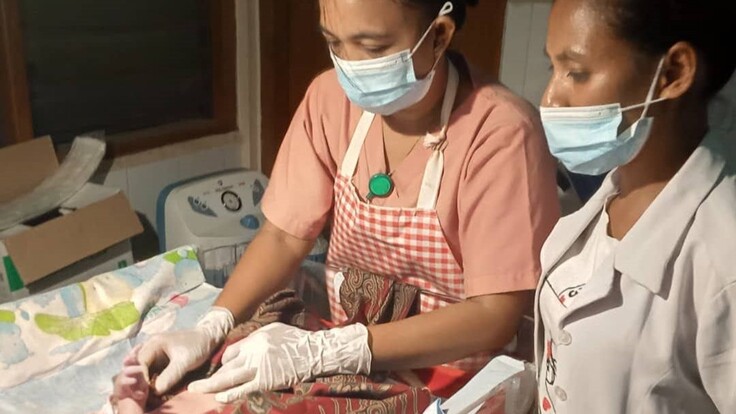 東ティモール政府保健省が管轄する「国立医療研究所」から、普通分娩研修を医療者に対して実施しています。正しい技術で保健サービスを提供できるようになることが目標です。これまでに医師や助産師の計20名が研修を受け、医療者の中には、初めて正確に出産を取り扱えるようになったと感謝の声を寄せる方もいます。