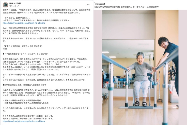プロジェクト開始直後には、Instagram、X(旧Twitter)、Facebookにて 東京カメラ部さんの公式アカウントより本プロジェクトを大変ご丁寧に告知していただきました。
