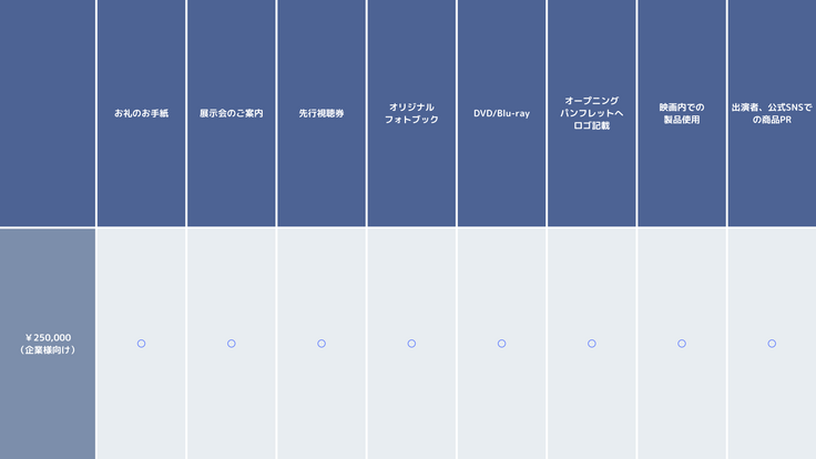 映画の冒頭OP部分と本作パンフレットへ企業ロゴを記載いたします。