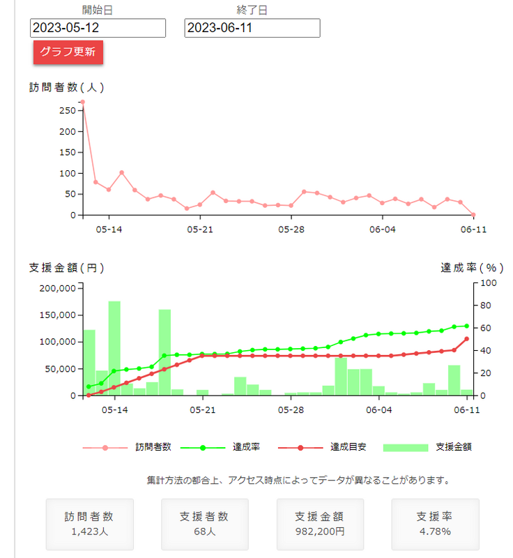 クラウドファンディン、成功できるのか! 6月11日の途中結果です。