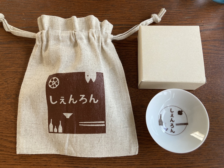 しぇんろんのロゴ入り平盃と巾着袋、可愛く仕上がりました❗️