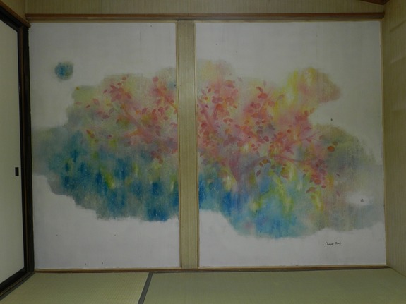 その場で感じたことを描いてくれて柱の部分を上手く取り入れ素敵なアートとなりました。