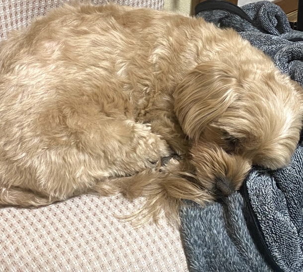 利尿剤を飲んでいても、通常よりも少し呼吸回数が多いのが心配ですがゆっくり寝ている姿を見ると少し安心します😢