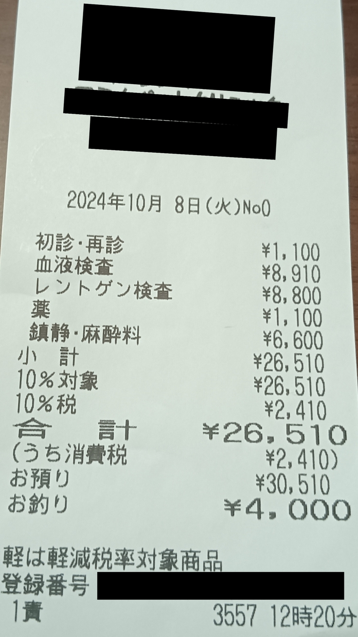 三毛猫の骨盤骨折の過去の手術・治療費(10/10に手術、10/18に退院。費用支払い済みです)と