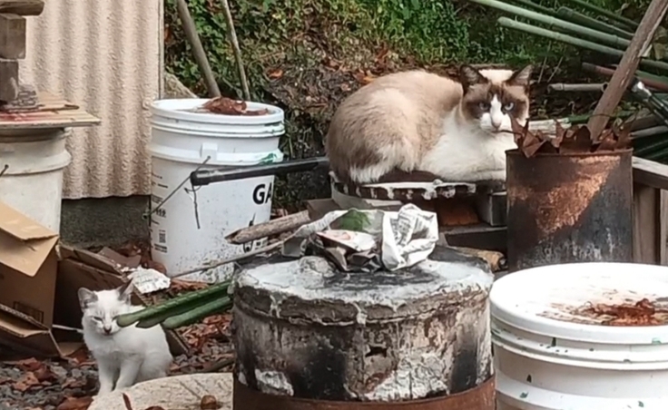 また保護した三毛母猫の近くの野良のシャムミックス親子がおりました。