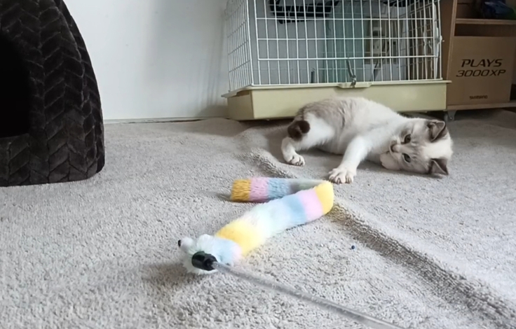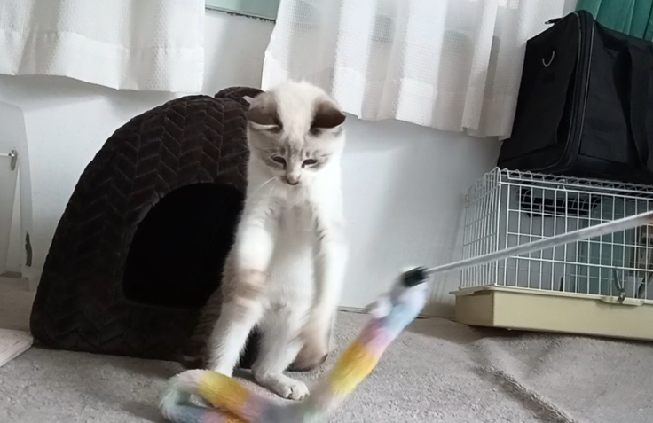 ヘトヘトになるまで一緒に遊べるようになりました🐈️
