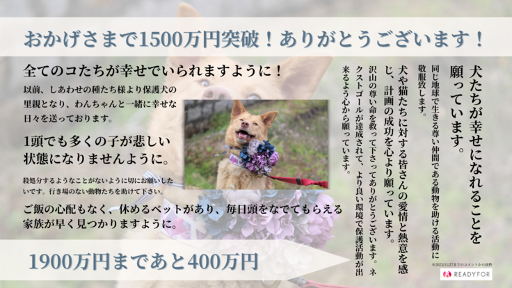 皆様のあたたかいご支援のお陰で1500万円を超えました!