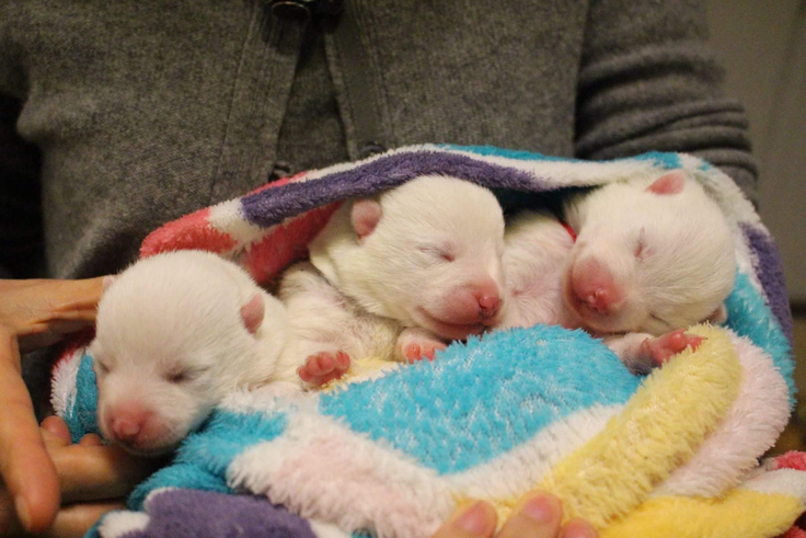翌日、三匹の白い子犬が万里歌さんのベッドに産み落とされた。