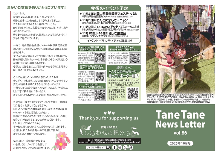 今後とも、保護動物たちのために、変わらぬお力添えを賜りますよう、