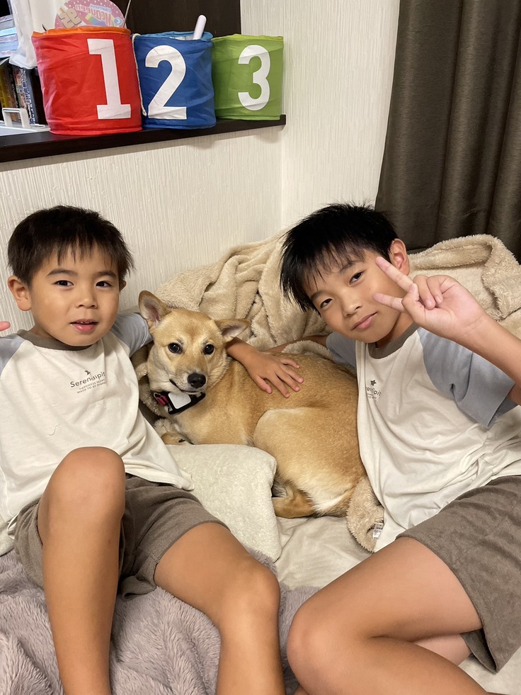 元野犬と聞くと、怖いイメージがあるかもしれませんが、ぽのは本当ーーーに穏やかで優しい子で、子供たちにも歯を向けたことは一度もありませんし、おやつをあげる時にうっかり歯が当たってしまっただけでごめんねーという顔をします。