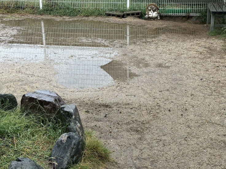 保護ママは一生懸命スコップで池を埋めながら「雨降り嫌だ~!😢なんとかしなきゃ!」っていつも嘆いてるけど、僕たちは楽しい😁