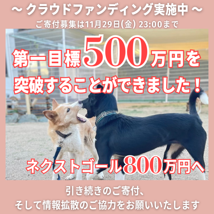 ここからいただくご寄附は、外構工事(フェンスの脱走対策強化・ランの雨除け屋根の設置など)に充てさせていただきたく、11月29日(金) 23:00のプロジェクト終了まで引き続き挑戦させてください!