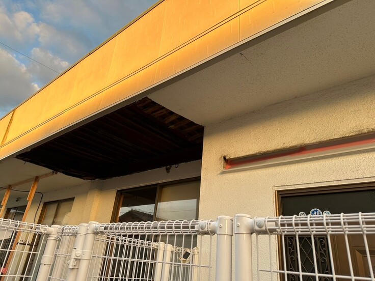 当初考えていた軒の修繕では済まないようで、隣の部分は軒が落ちないよう木で補強し、一旦中断し対策を思案中だそうです😥