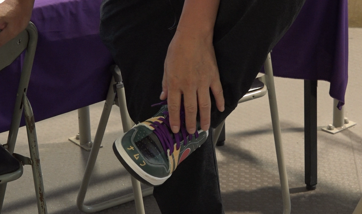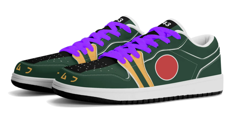 その他にも、スニーカーの中央に2本引かれた黄色い線は、隊長機の2本線を表していることや、靴紐の紫は紫電改パイロットの象徴でもある紫のマフラーをイメージされており、まさに「紫電改を纏う」ことができるような、スニーカーとなっています。