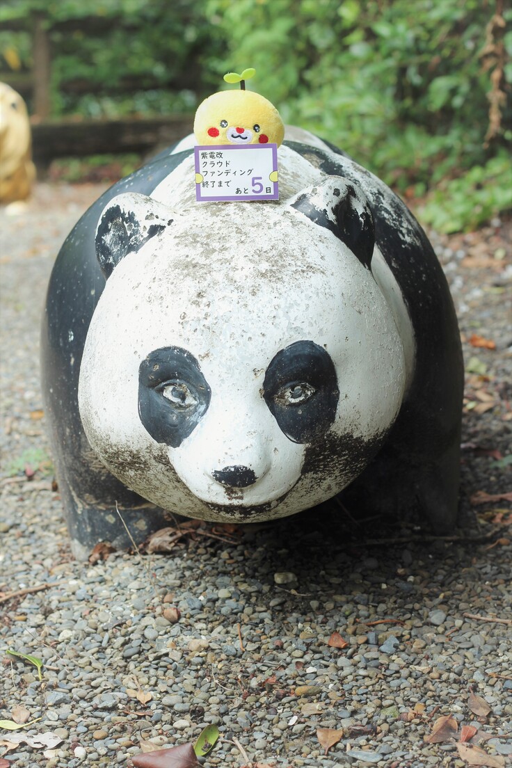 紫電改展示館のある南レク馬瀬山公園には、「かわいくないパンダ」で知られるパンダの遊具があります。2010年にテレビ番組で紹介され、そのユニークな表情が話題になりました。