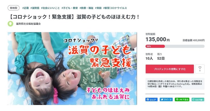 【コロナショック!緊急支援】滋賀の子どものほほえむ力!