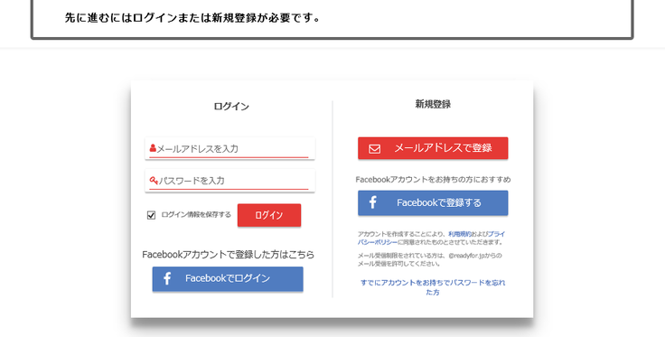 ※READYFORで初めて支援される場合は[新規登録]を選び、アカウントを作成してください。