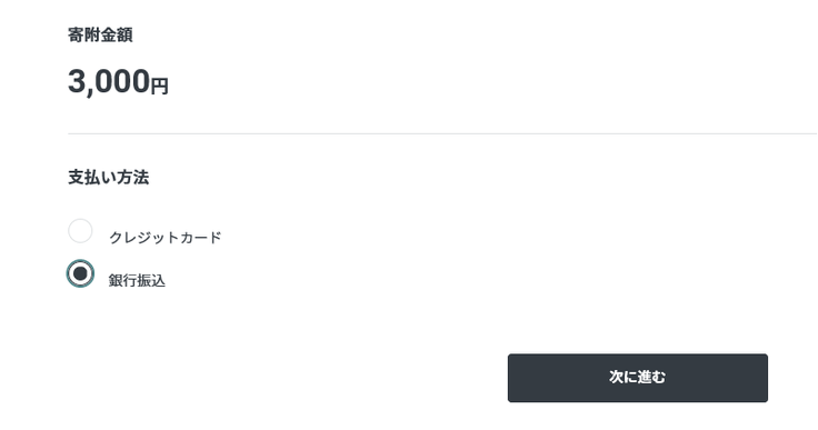 支払い方法[銀行振込]選択し、[次に進む]をクリックします。