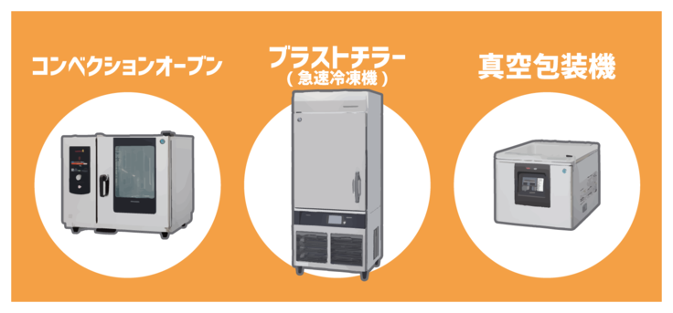 100万円が集まった場合、下記画像の機材3点(コンベクションオーブン・ブラストチラー・真空包装機)の導入費用として使用させていただきます。