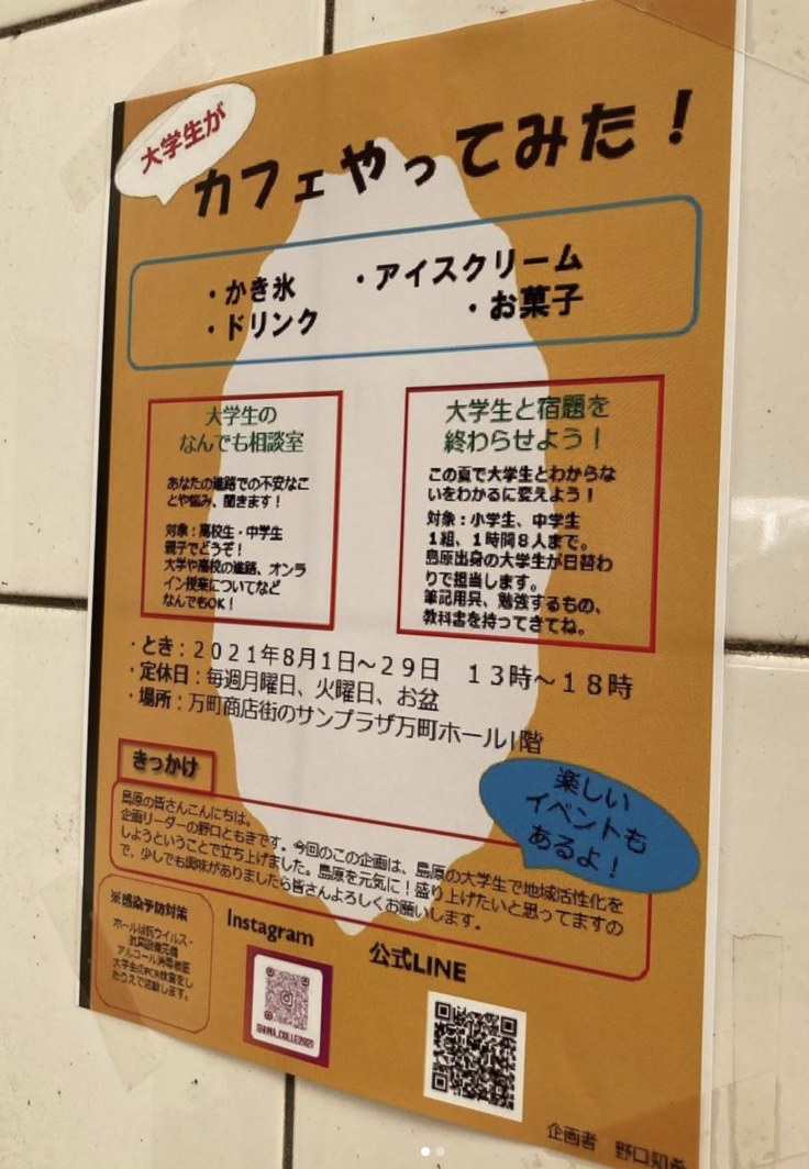 自分自身が進学で島原を出てみて感じたこと、考えたことをもとに、島原に住んでいるときとは違った視点で、島原がどうしたらもっと元気になるかを考えてみました。その上で、上記の記事にもあるようにSPINNSさんのご協力のもと、高校生と働き方ワークショップを開催したり、自分でカフェを出店してみたりと活動してきました。