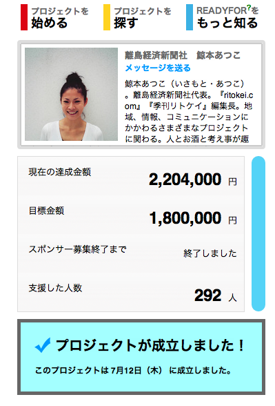 みなさま、先日より御応援、ご協力戴いておりました島Booksプロジェクトは、