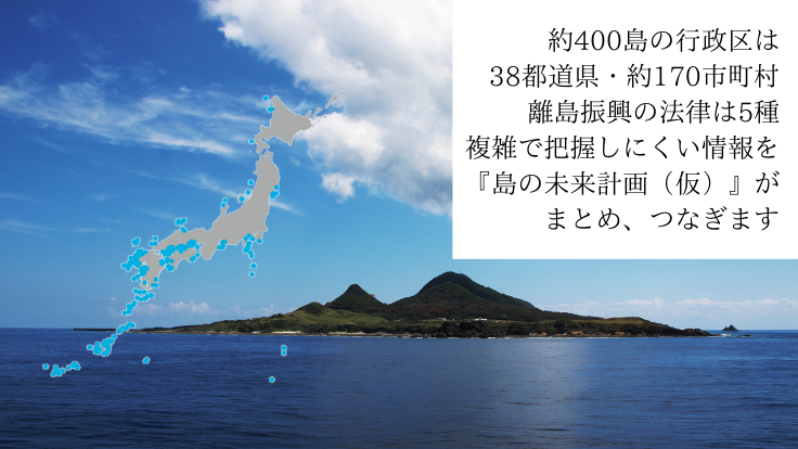 なぜかといえば、島の情報は170市町村・38都道県、各種振興法ごとにまとめられる振興計画など、バラバラに存在していて、読み解くだけでも膨大な時間がかかるからです。
