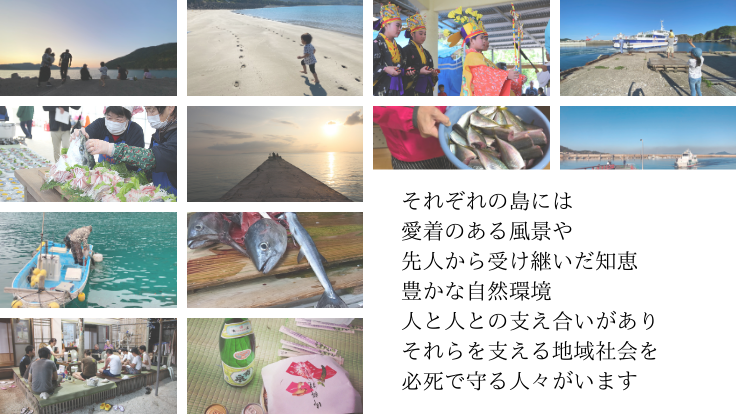 があるなど、これから先の日本社会(あるいは世界)が必要とするキーワードがたくさん存在しています。さらに島は、他地域との境界がはっきりしている分、人やものやコトの動きが把握しやすく、社会変化が見えやすいという利点もあります。