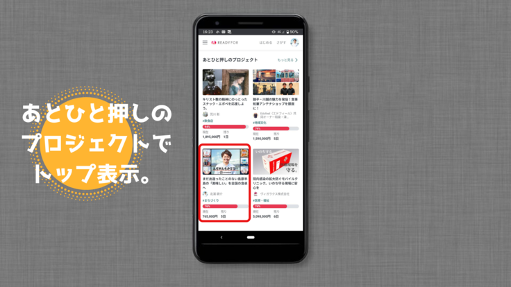 このプロジェクトがReadyforのトップページに掲載がされました!!