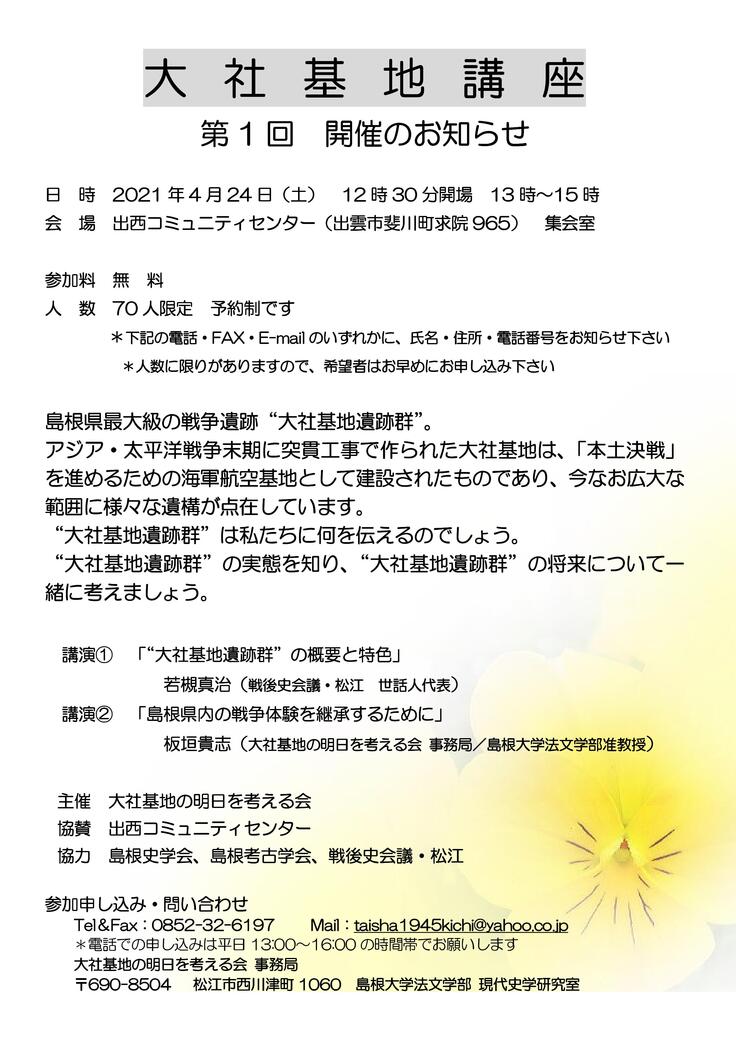 Tel&Fax:0852-32-6197 Mail:taisha1945kichi@yahoo.co.jp
