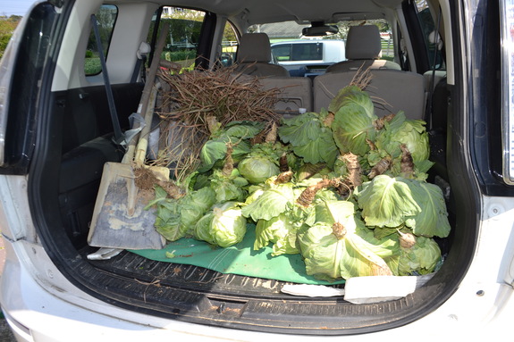(スタッフがマイカーでキャベツを運んできてくれました)