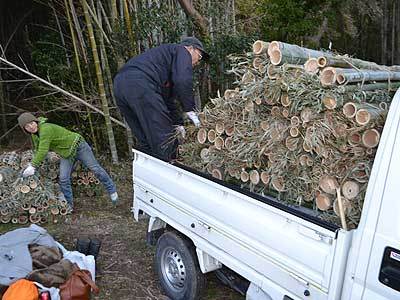 ▼切った竹を引き出してくるのも男子がいてくれると大助かり