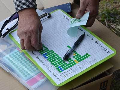 ▼そして、1時間につきシールを1枚貼り、作業に要した時間を記録していきました。