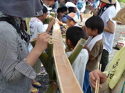 ▼そして、竹プールの横では、竹で作ったそうめん流し台!