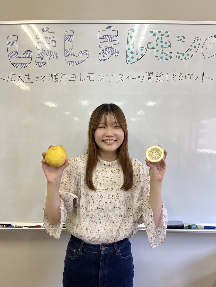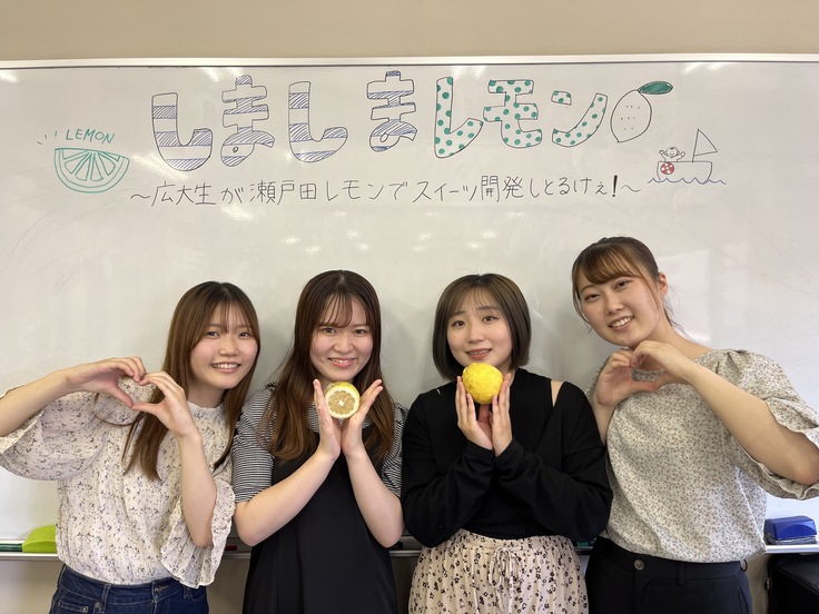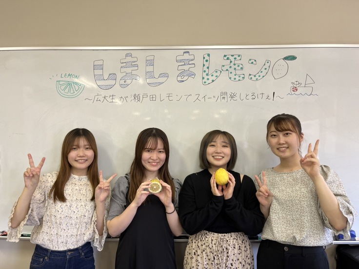 広島といえば「レモン」ですが、瀬戸内海のレモンの島瀬戸田を元気にしようと広島大学教育学部の人間生活系コースの学生たちがレモンを使った新しいプロジェクトを始めました。 この学生たちは、広島大学の地域連携事業「地域の元気応援プロジェクト」でも瀬戸田とつながり、現在は4年生となった先輩たちとこの3月から、せとだレモン祭の情報発信に、賑わい創出にと地元の皆さんと一緒に大活躍してきました。今度はバトンを受けた2年生4人のメンバーでスイーツの開発・販売に取り組みます。「しましまレモン」プロジェクトにおいて、学生の視点でつくったスイーツが瀬戸田の活性化に貢献していくことを私も大いに期待し、応援しています!