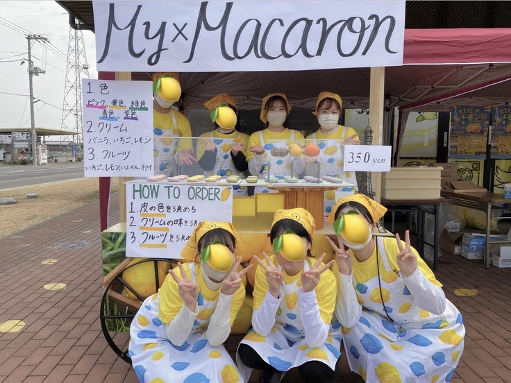 私たちは、先輩方が発案してくださったカスタムマカロンをせとだレモン祭まで繋いでいきました。先輩たちからプロジェクトを受け継ぎ私たちもそれに参画していきたいと思い、新商品開発というプロジェクトを行います。