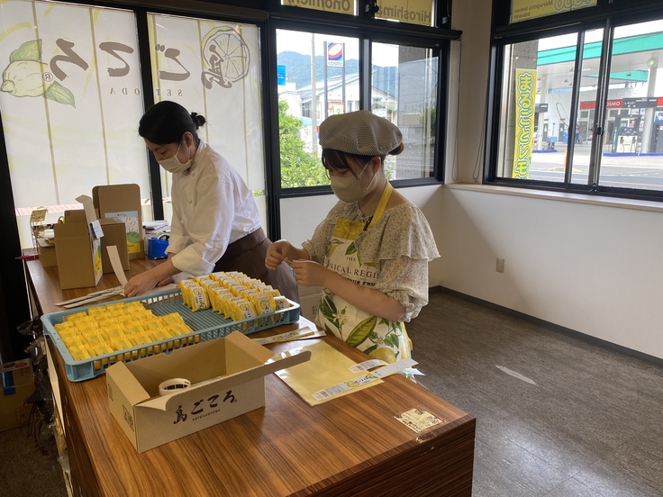 8月27~31日の5日間、瀬戸田町生口島にある「島ごころ」さんにご協力いただき、販売経験を積んだり、物流を学んだりと、商品開発に必要な様々な経験をしました。商品開発に必要な費用や技術など販売面の知識を得ることができました。