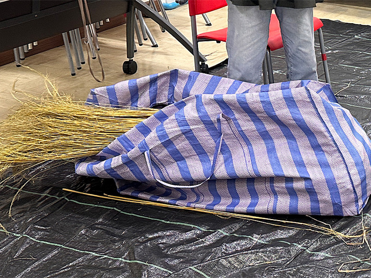結び用の藁紐の作り方も教えましたが、こちらはみなさん、さすがに苦労されておりました。