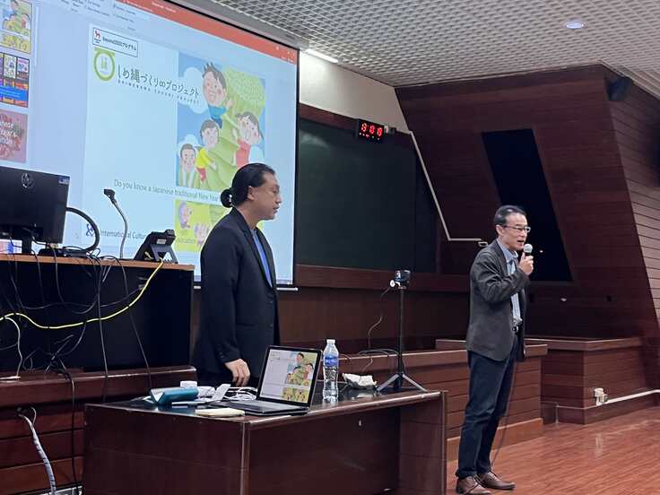 しかも、この日は、在タイ王国日本国大使館の西岡次席公使もご出席くださり、冒頭にはご挨拶も賜りました(もちろん、しめ縄づくりもご体験いただきました)。