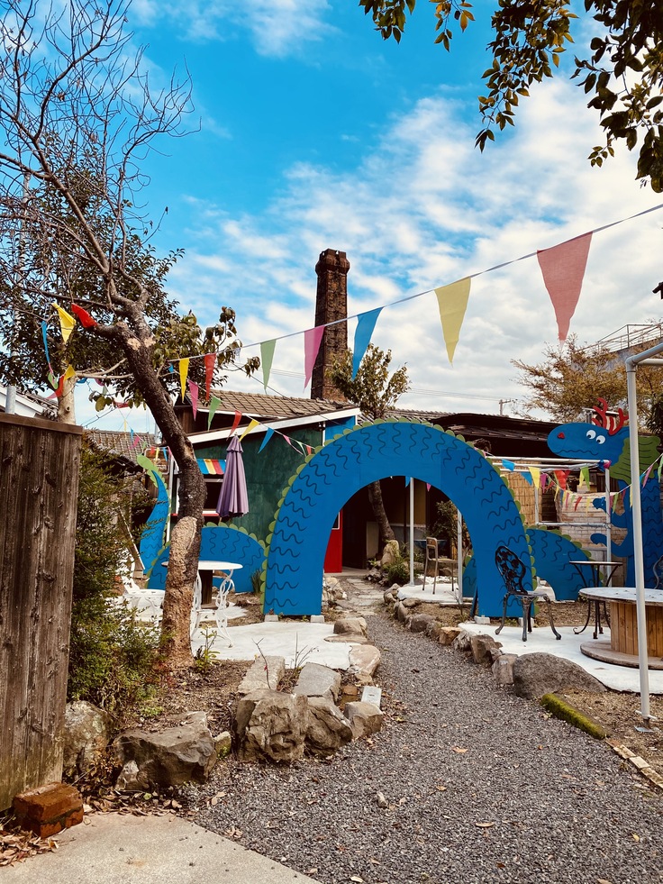 昨年、雑草が生い茂り荒れ放題になっていた裏庭を改修し新たに生まれたスペースです。ロフト付きカフェや、手作りピザ窯、ヒダカナオトの立体作品などを楽しめる空間になっています。