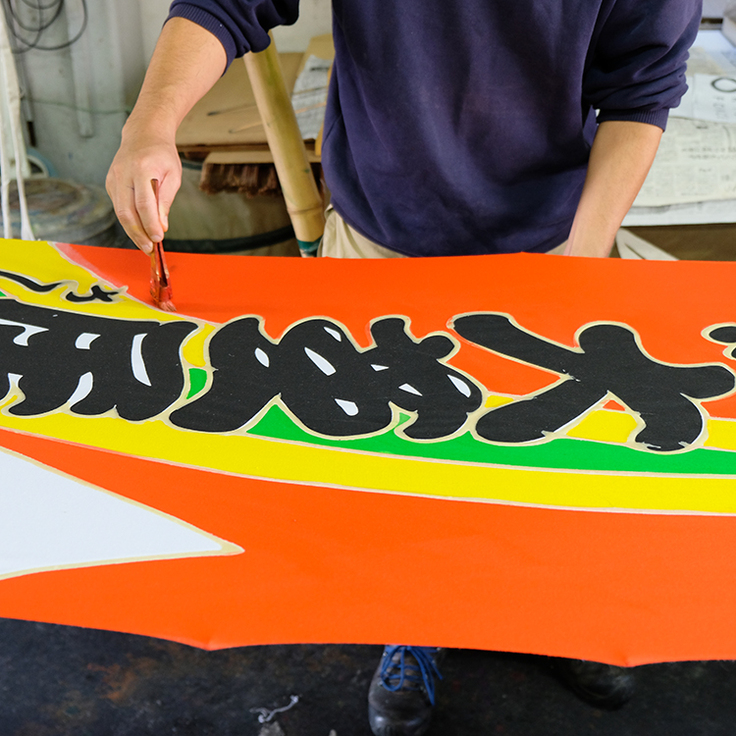 そこでは、生活に密着した野良着や着物が染められ、さらに、暖簾(のれん)や幟(のぼり)・幕なども作られてきました。