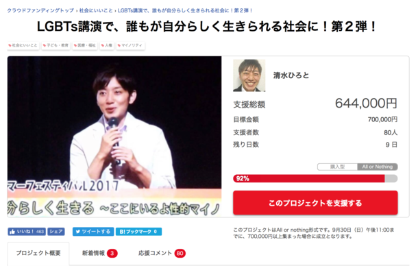 今回のプロジェクト、誰もが自分らしく生きられる社会へ!90%を超え第2弾のゴールが見えて参りました。誠にありがとうございます!!