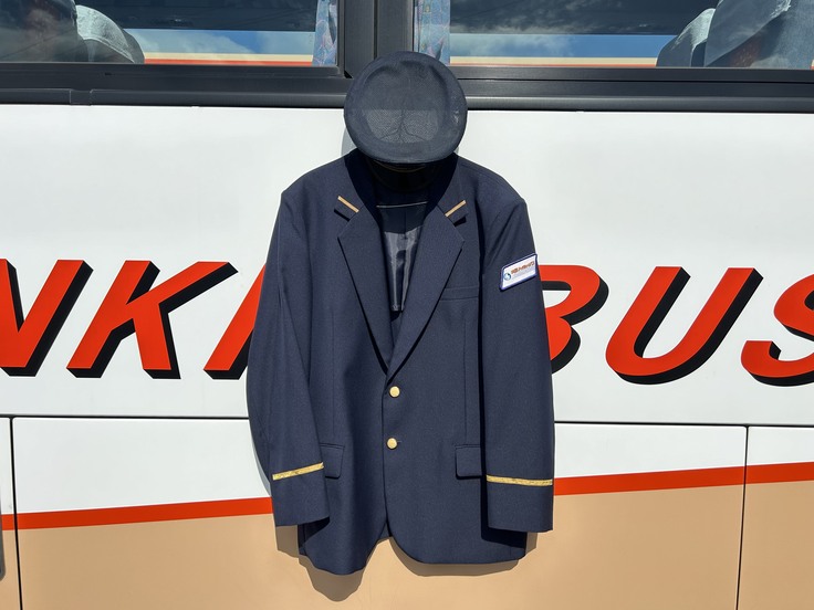 高速バスの当時の制服。襟や袖に金色の装飾が施されている。