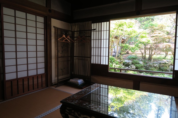 稚児の間という部屋で、築350年の襖仕切りの個室になっており、障子の窓を開けて頂きますと