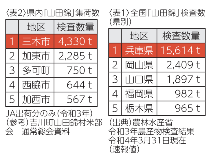そして、同年時点でその生産量の約56%を兵庫県産が、行政区では三木市が最多の生産量を占めています。
