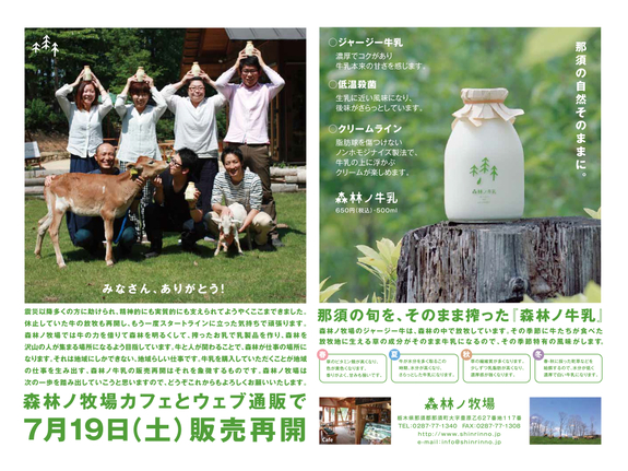 この度は私達のプロジェクト「機材を改修し、震災で販売休止となった森林ノ牛乳を復活させたい」にご支援をいただきましてありがとうございました。