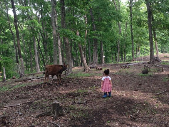 ↓ カフェの横から入れる「森のこみち」仔牛がお待ちしています。