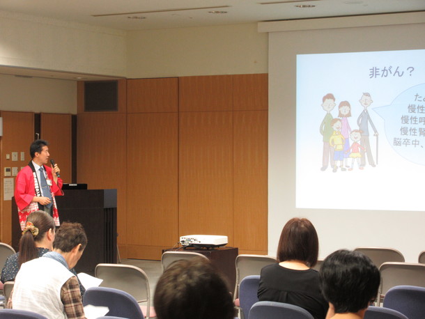 講演会では、村上緩和ケア内科部長と牧内がん性疼痛看護認定看護師による『緩和医療、麻薬』についてのお話しがありました。