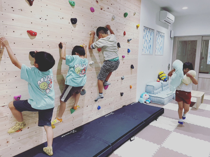 子どもたちがまた来たい!と言ってくれる理由のひとつが、このボルダリングボードです。