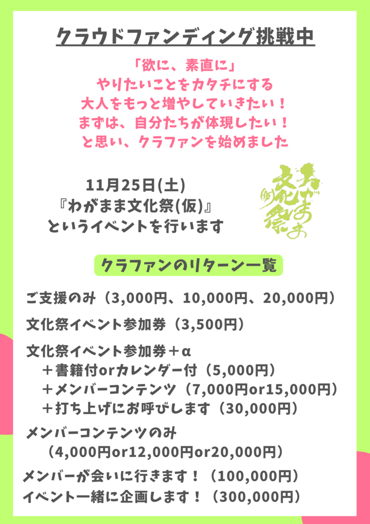 わがまま文化祭(仮)当日も、ぜひ遊びに来てくれたらうれしいです!
