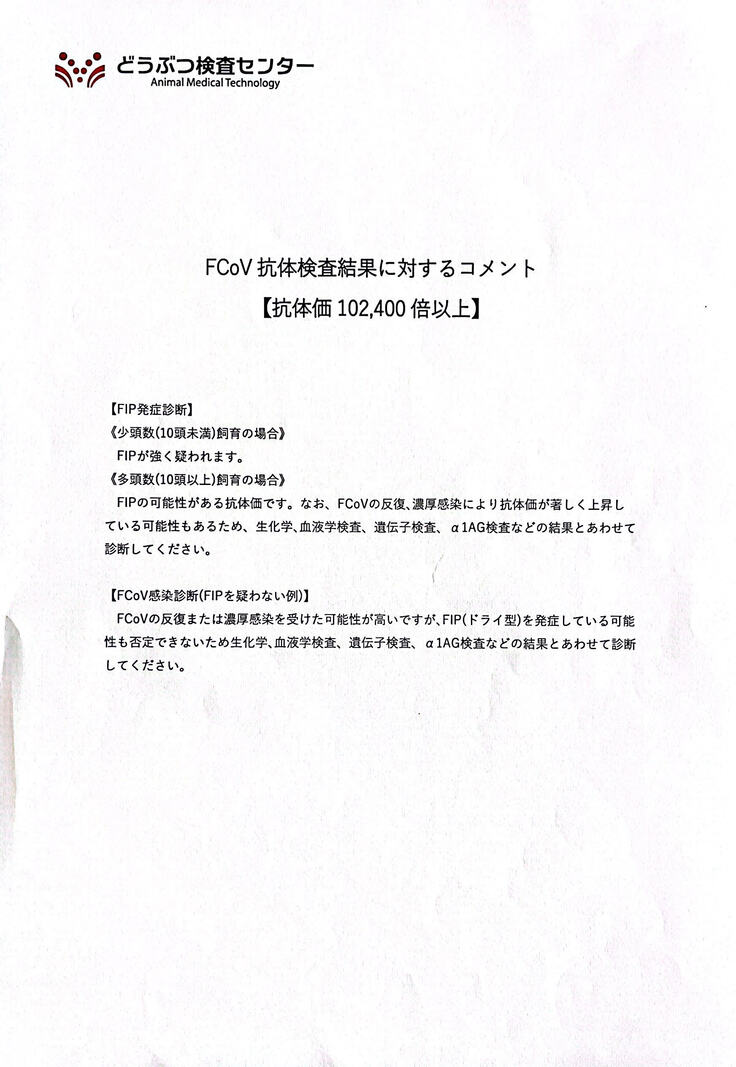 FIPの可能性が高いとのこと。